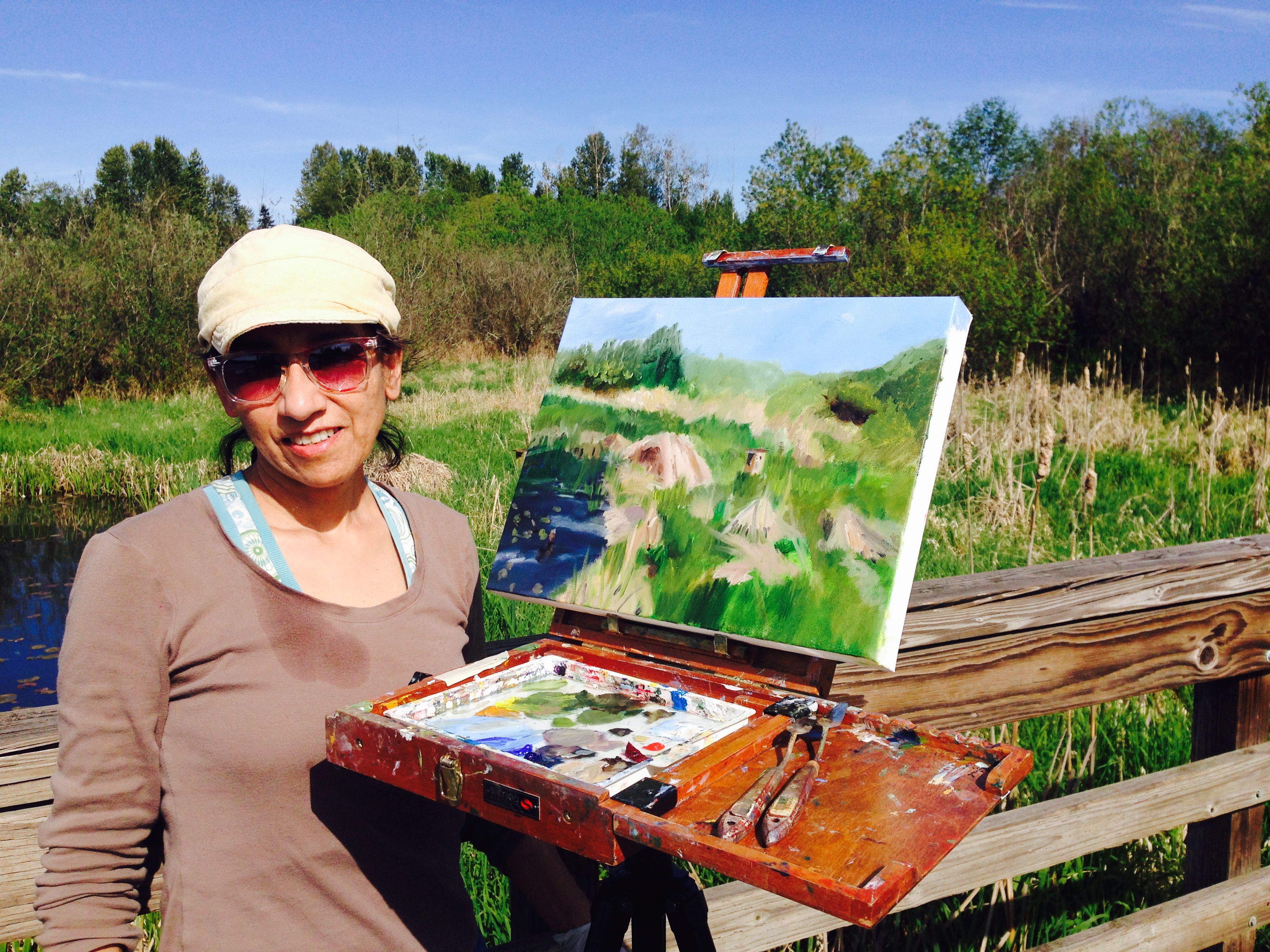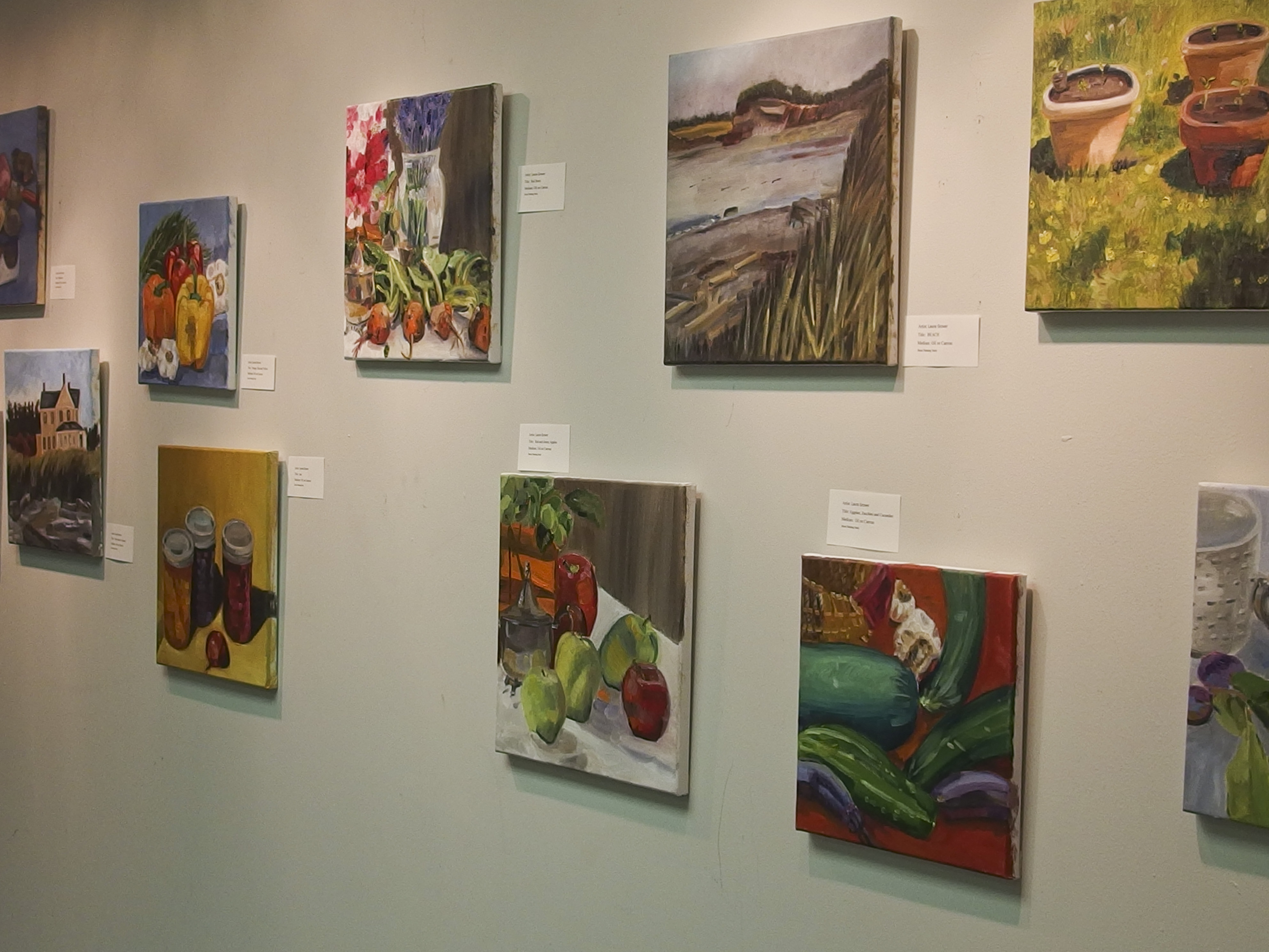 Everyday was my idea for these, three hour, paintings. I wanted them to be fresh quick and lively. I chose subjects that were on hand with little manipulation. I was more interested in my experience and quick color application then police report accuracy. Painting outside with the natural light made the whole process quite exciting to me because of the movement and change of intensity of the light. Each time I was capturing a living moment. The beginning was a mixture of childlike zeal and anticipation to interpret what I see with my brush and paint.  – Laura Grover